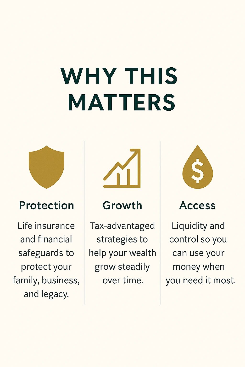 Whether you’re self-employed, climbing the corporate ladder, or enjoying retirement, the right strategy can blend security, growth, and flexibility. Our role is to guide you toward solutions that safeguard your loved ones, grow your wealth, and give you options when you need them most.
